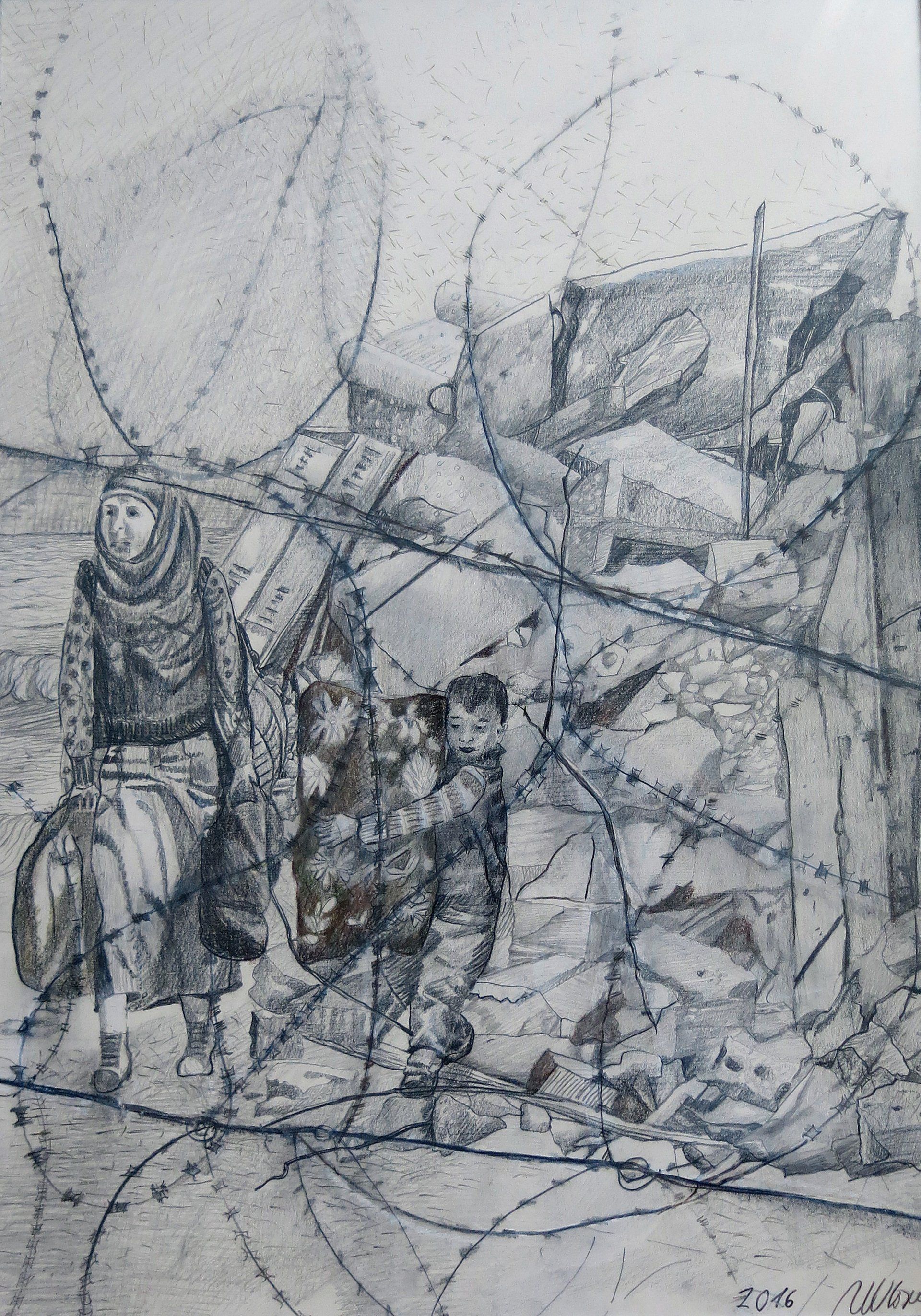- Ulla Klomp (Foto, Malerei, Zeichnung u.a.) malt realistisch, verlässt die Realität aber auch gerne , indem sie lyrische Texte einbaut, mit Kreide, Graphit- und Farbstiften übermalt und ergänzt, collagiert und zusammennäht (Baumblätterobjekte), zeichnet und Strukturen setzt, auch mit Kaltnadel: Linien, Ornamente, Risse und Verwerfungen bringen zusätzliche Aussagekraft in ihre Bilder. Als Lyrikerin kombiniert sie gerne Bilder und Texte. Das menschliche Abbild ist eines ihrer Hauptthemen, u.a. das Selbstbildnis. Sie fertigt Land-Art-Objekte an, erstellt digitale Foto-Graphiken, und spricht immer wieder (umwelt-)politische und soziale Themen in ihren Bildern an.